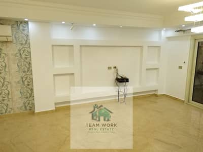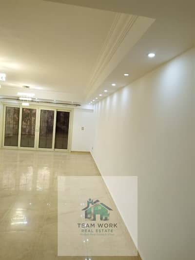 For rent in Sheikh Zayed, a villa with a building area of 338 square meters, consisting of 3 floors. The basement includes a reception area, dining room, a large open-plan kitchen connected to the dining area, a storage room, and a guest bathroom. The first floor has two bedrooms, each with its own bathroom. The second floor has three bedrooms, two of which have their own bathrooms. There is a 100-square-meter garden with artificial grass, a backup water tank in case of water outages, a ground-level water line, curtains on all windows, gas, nine external security cameras, and an internal alarm system.