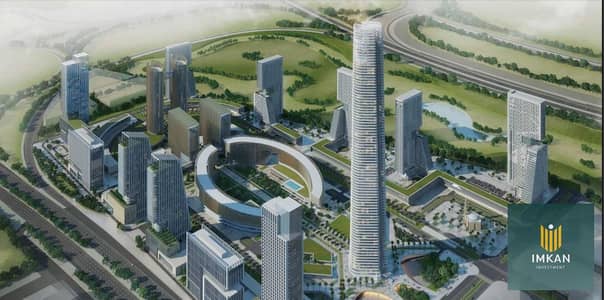امام البرج الايقوني مباشره و علي شارع بن زايد الشمالي الرئيسي وامام المونوريل في اهم منطقه استثماريه في العاصمه الاداريه