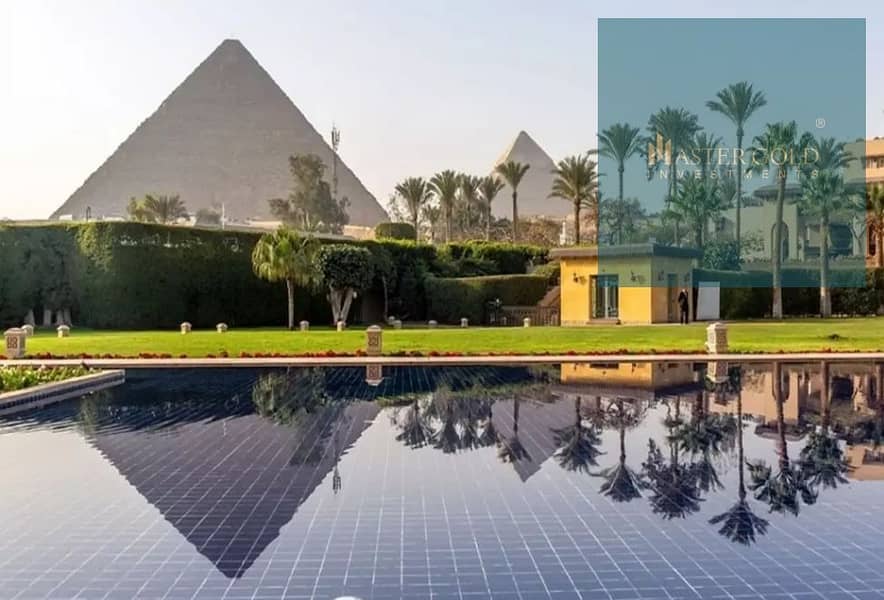 It directly overlooks the Giza Pyramids.