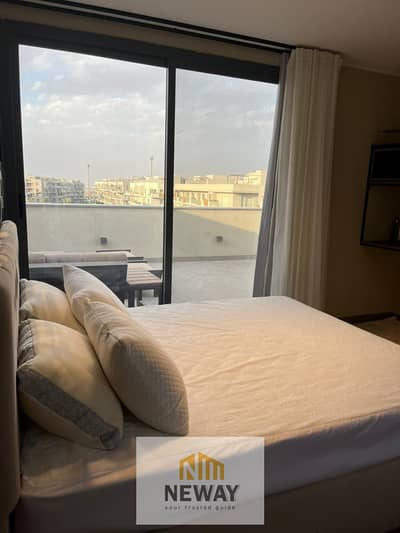 furnished studio for rent in Sodic V Residence villlette – 40 sqm indoor + 70 sqm outdoor area, fully equipped with air conditioners