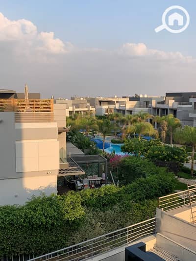 Twin house for sale in Patio Al Zahraa Compound - La Vista, Sheikh Zayed City, next to Al Ahly Club . Landscape and swimming pool view.