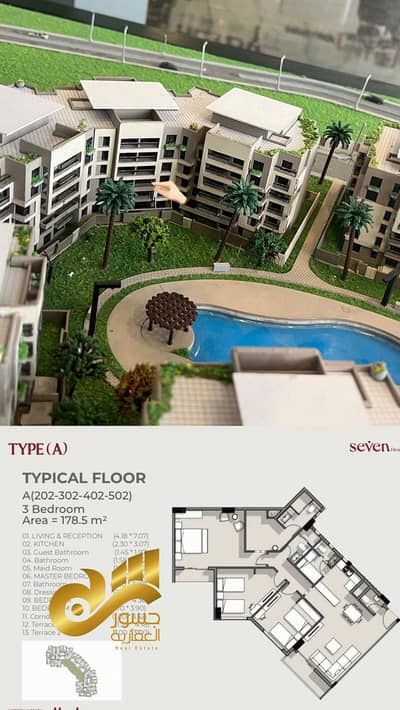 Apartment of 174 m in a Seven Residence compound on Zein Street Direct and in front of Zeweil University, in October Gardens, on an area of 17 acres