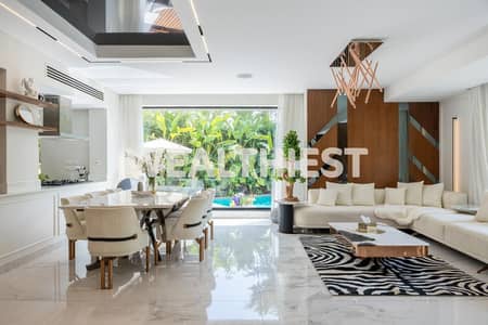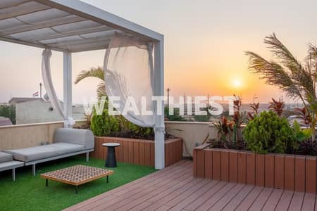 The villa includes 4 bedrooms and 3 bathrooms, featuring a spacious reception area, a separate living room, and a fully equipped American kitchen.