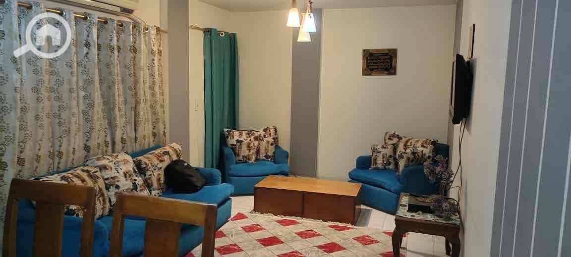 The apartment is fully furnished with a modern taste and comprehensive amenities, with a distinctive interior layout that gives a sense of spaciousness and comfort.