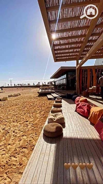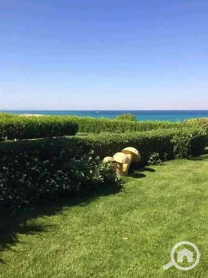 Three-bedroom chalet by the sea with a private garden in Kaay Al-Sokhna, fully finished, and the village is ready for viewing. The chalet with a garden includes three complete bedrooms, a inhabited village with all services available.
