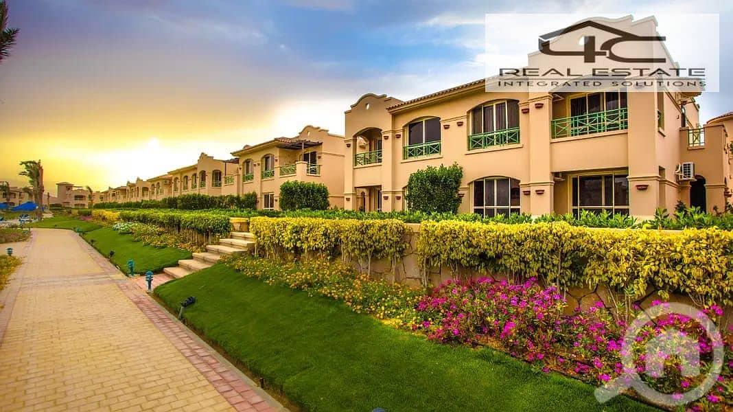 For quick sale at a price lower than the company's price: Ground floor chalet with garden, resale, fully finished, La Vista Topaz,Ain Sokhna pool view