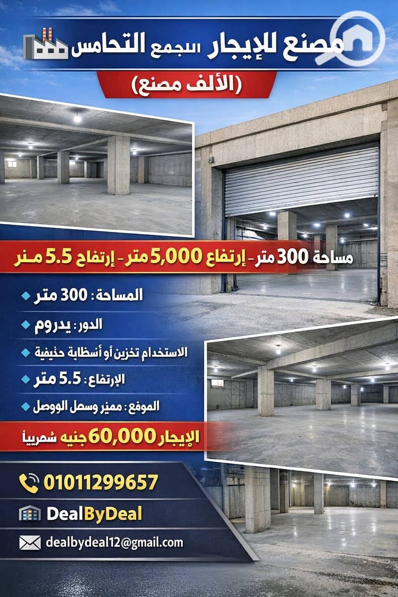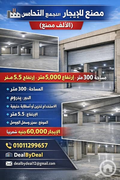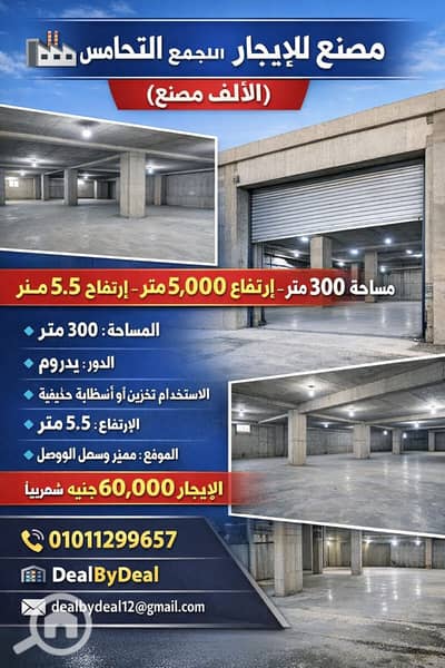 Factory for rent in Fifth Settlement Industrial Area, 300 square meters, basement suitable for storage.