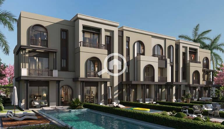 For sale Prime location townhouse on lake by Creed, in the Eveer New Cairo , 6th Settlement. A fully serviced project next to Crescent Walk, Zed East, the Middle Ring Road, and Mohamed Naguib Axis, near Hyde Park New Cairo, the American University in Cairo, Al-Ahly Club, and Cairo International Airport.
