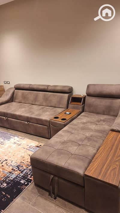 “A fully furnished serviced apartment for rent – first occupancy – in Al-Canaria Compound, Sheikh Zayed, at a bargain price with amazing furniture. ”