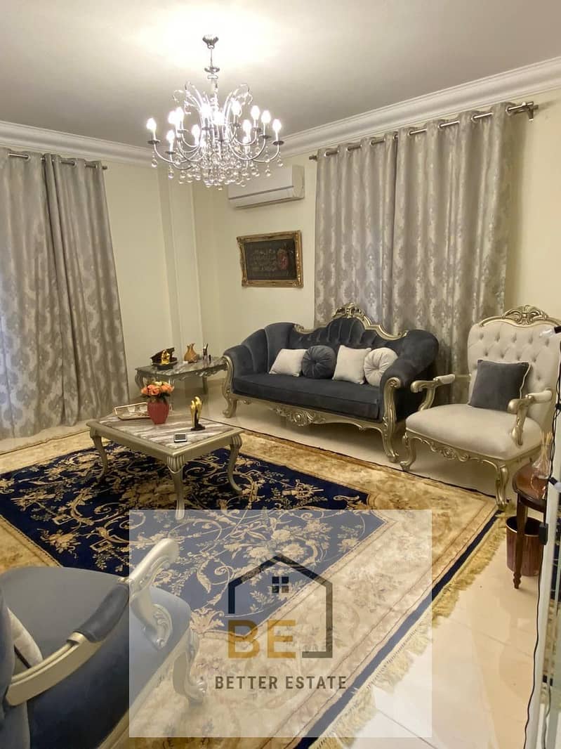 تمتع بالسكن الراقي في قلب منطقة الفيلات بحي الياسمين، شقة مفروشة بالكامل بتشطيبات سوبر لوكس وموقع هادئ ومتميز.