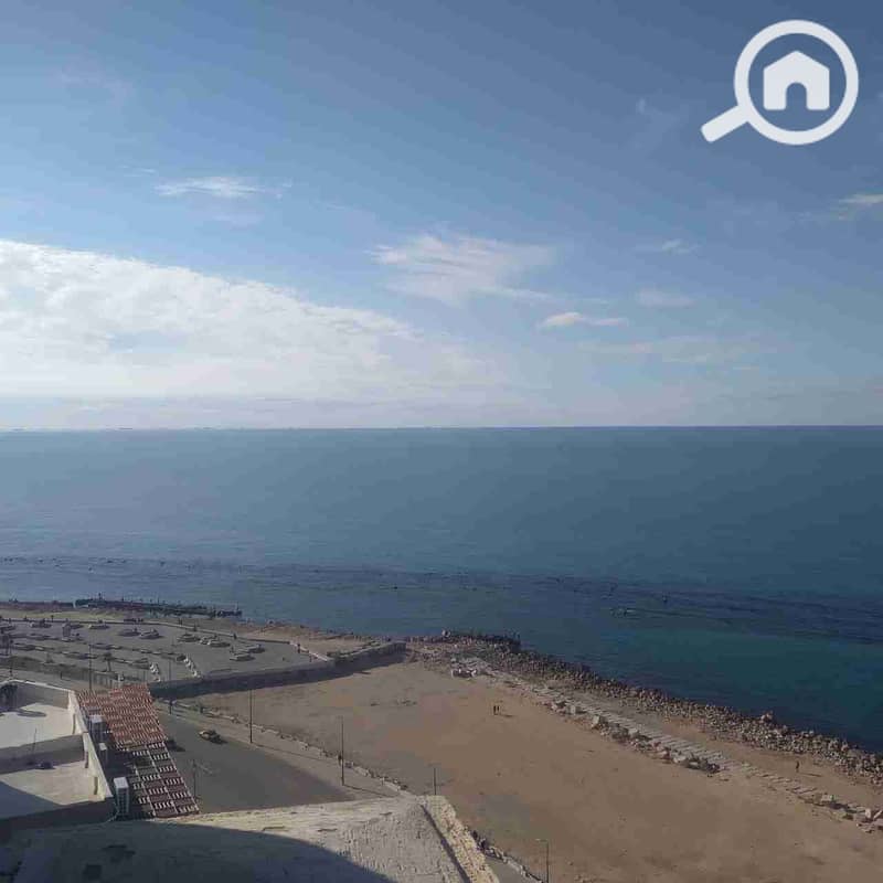 شقة 200 متر مكيفة بالكامل بميامي على البحر مباشرة، مفروشة فرش راقي، مميزة جدًا للمصايف والإقامات الهادئة.