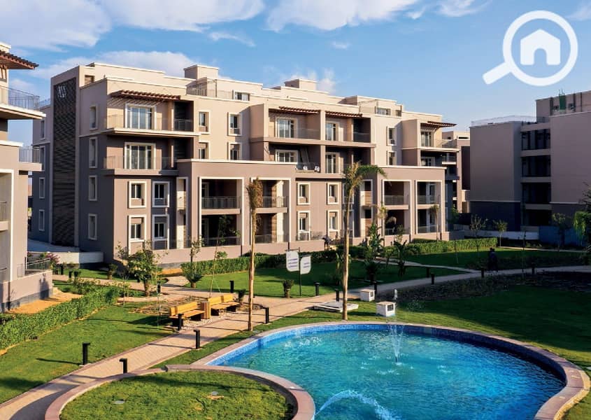 Penthouse for sale in October Plaza compound, with two direct views of the water features from the balcony and rooftop.