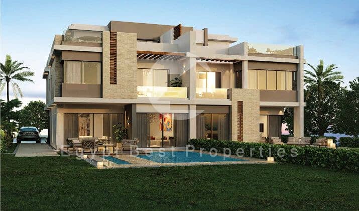 The villa is located within an integrated community surrounded by expansive green spaces and open landscapes, with quiet internal roads and walking and jogging paths, creating a residential atmosphere that combines luxury and nature.