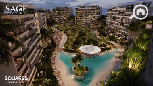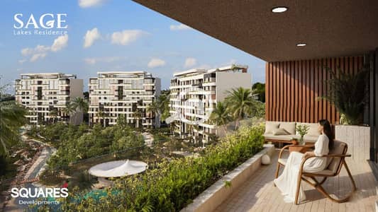 Two-bedroom apartment, 112m, in a Sag Compound with a view of the lagoon and landscaping, with a monthly installment of only 24,000 from a strong real estate developer with real projects, next to the Diplomatic District and the Ministries District.