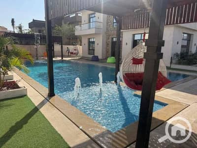 2 غرفه ماستر و حمام و مطبخ وريسبشن كبير كله بيطل على حمام السباحه