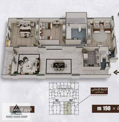 A distinguished 190 SQM apartment for sale located in a prestigious residential building, offering a practical layout and spacious living areas ideal for elegant family living.