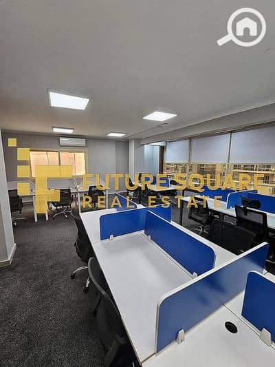 مكتب إداري مجهز ألترا مودرن بمساحة مفتوحة Open Area، مناسب لكبرى الشركات، داخل أحد أقوى المباني الإدارية في القاهرة.