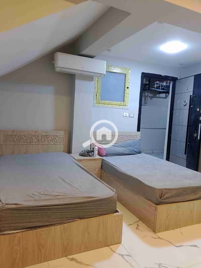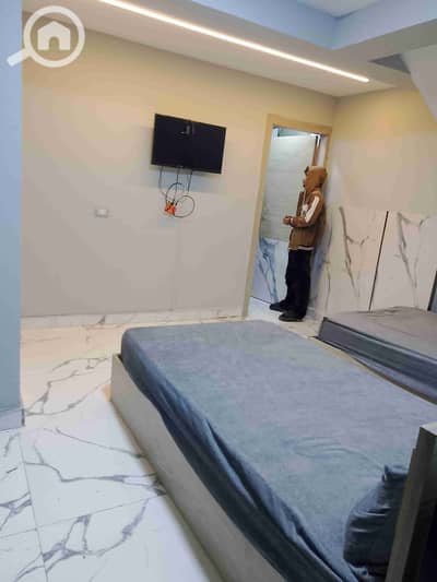 Furnished studio for rent in the first neighborhood, adjacent to Al-Nawal Al-Dajwy University area 8, excellent furnishings, near Al-Wahat road, three minutes walk, exclusive 10 minutes, near Al-Safwa Hospital, close to all services, private entrance, age stone (hardstone) with an elevator. For contact, 01069133281