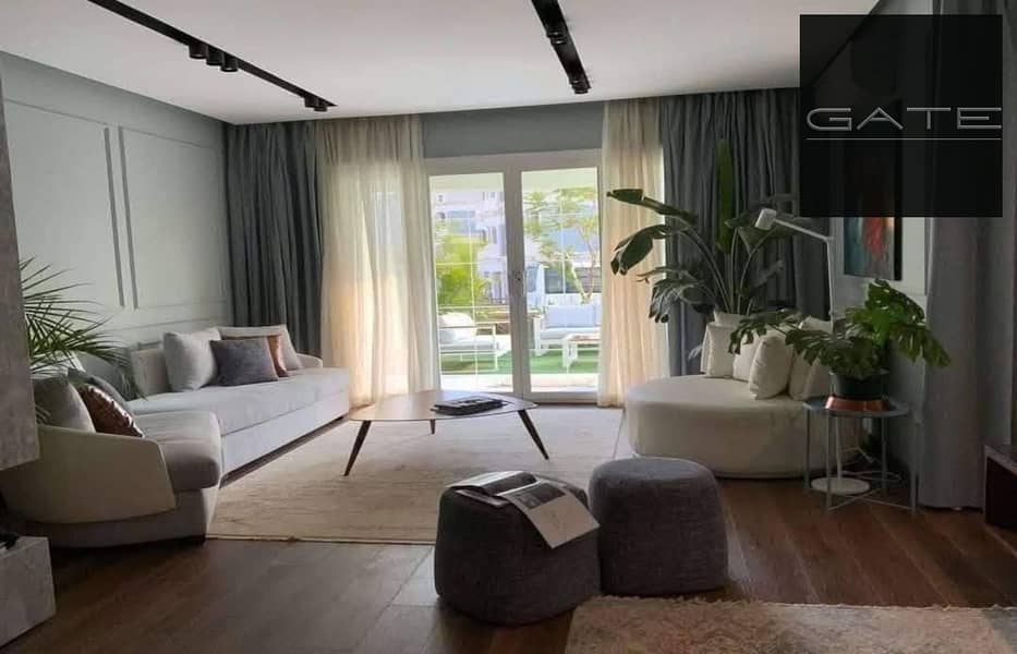 Ground floor chalet for sale with garden at the lowest price, fully finished and furnished - overlooking a swimming pool in Mountain View Ras El Hekma