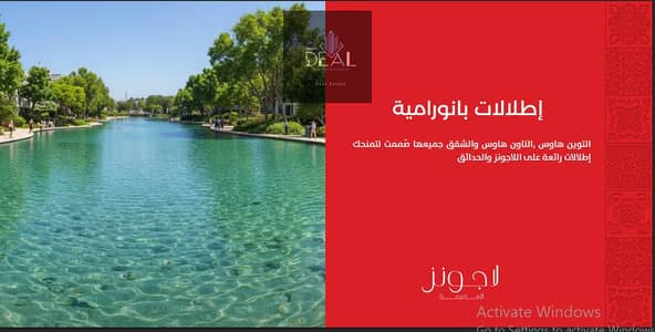 Apartment for sale with an open lagoon view in Lagoonz Al Assema Compound, located on the Central Axis leading to the New Administrative Capital Airpo