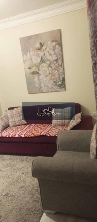 Furnished studio apartment for rent in Madinaty, ground floor with a 64 sq m garden + 40 sq m garden in B7. High-end finishing, modern furnishings, very close to amenities, steps from South Park and other attractions. A great deal!