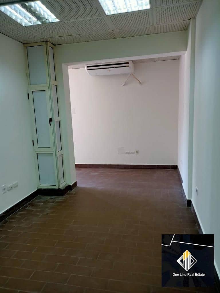 Office for rent in Al-Muizz Mall, air-conditioned and furnished, Al-Moaz (El-Moez) district, Sheikh Zayed Street 12, suitable for any activity