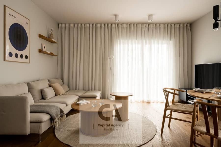 **Villette Sodic Compound, Fifth Settlement, New Cairo | Fully furnished and finished apartment for rent | With a view of the garden and swimming pool.