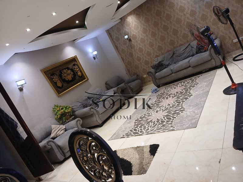 For those who appreciate upscale neighborhoods in Obour City, an apartment is for sale in the 6th District, one of the most prestigious areas in Obour. The location is prime and quiet, very close to Al-Ghafour Al-Raheem Mosque. It's on the second floor with a front balcony. The layout includes 3 bedrooms, 2 bathrooms, a large reception area, and a kitchen. The apartment features a super deluxe finish and includes separate electricity and water meters.