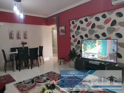 Furnished apartment available for rent, 100 sqm, fourth floor, eighth stage, with elevator, special finishes, complete with facilities, appliances, air conditioners, and kitchen.