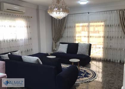 Furnished apartment with elevator, 150 sq m, for rent in Al Banafseg Buildings, First Settlement. It boasts a prime location near Mohamed Naguib Axis