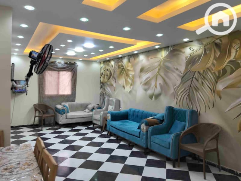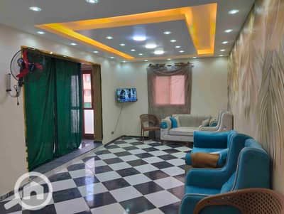 Fully furnished apartment for annual rent for a family or company, 3 bedrooms, 1 reception with two pieces, kitchen, bathroom, fifth floor, very comfortable staircase. It includes all utilities: water, electricity, and natural gas, in Alexandria, Al-Omri (El-’Azm?) Al-Ajrmi? Actually: Al-Ajmi, at Kilometer 21 Square, Alexandria-Matruh Street, in a very distinguished location.