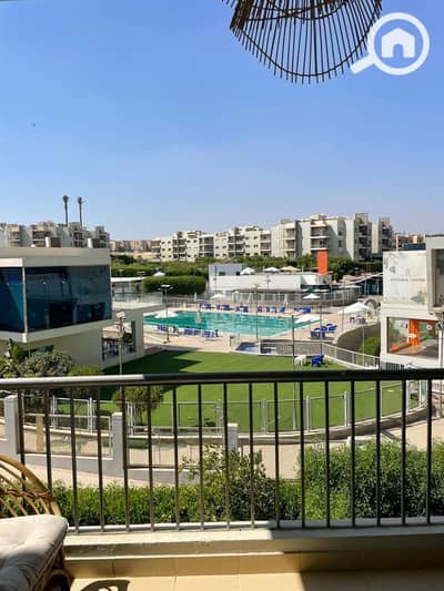 Apartment for sale in The Address Dorra Compound, Sheikh Zayed, with a view of the swimming pool and landscaped gardens, modern finishing.