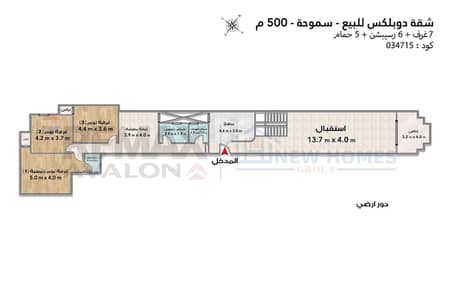 دوبلكس للبيع 500 م سموحة (ش فوزي معاذ - برج براند) - الوكيل/ نور الدين ايمن