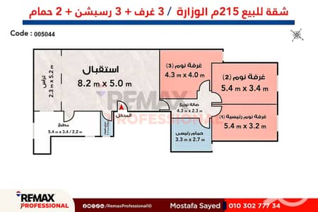 Apartment for sale, 215 m, Al-Wizara (Abu Qir Street) - EGP 5,000,000 cash - Agent: Mustafa Sayed