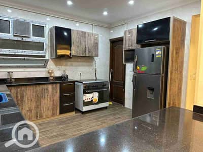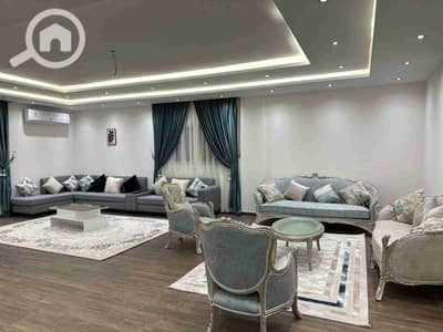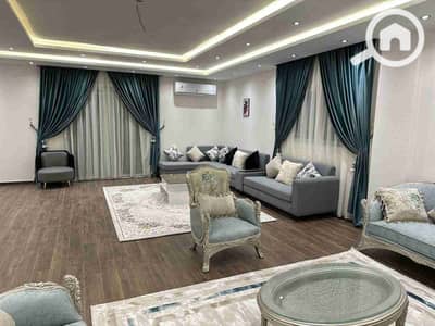 A luxury apartment for rent at the highest VIP level in 6th of October City, First Neighborhood, Tamaneh adjacent. The apartment area is 300 square meters, consisting of a 3-piece reception + dining room. A full HBL kitchen with all modern appliances (built-in gas hob + built-in oven + 18-foot refrigerator with freezer + microwave + fridge + kitchenware).