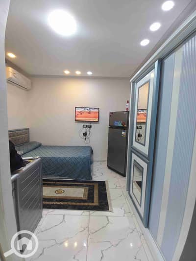Single studio in the best place in 6th of October City, Second District, including electricity, water, gas, and all services. The studio consists of one bed, a wardrobe, a carpet, a refrigerator, a gas stove, a washing machine, a kitchen, a 43-inch smart TV, air conditioning (hot and cold), heater, and electricity. We have more than one furnished studio, hotel-style furniture for rent.