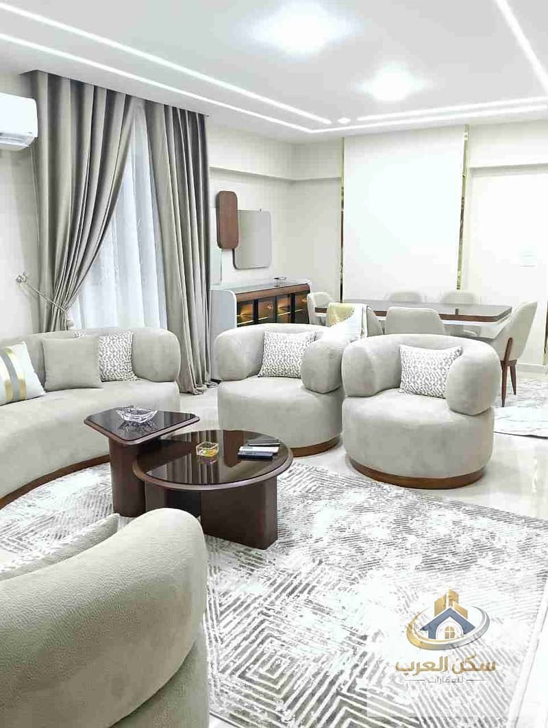 Furnished hotel-style apartment, 256 square meters, next to City Stars, sanitized, free Wi-Fi, daily and monthly rentals available directly from the owner.
