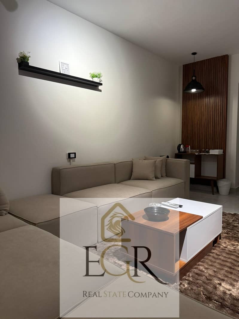 Furnished apartment for rent in Madinat al-Rehab 2. Area: 98 m². Layout: 2 bedrooms, 1 bathroom. Finishing: private. Floor: ground. Phase Nine. The price is special. The apartment is ready for occupancy.