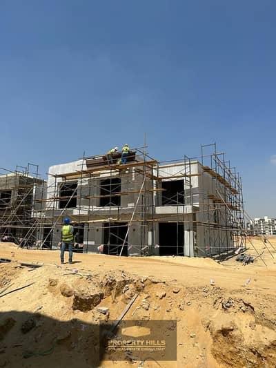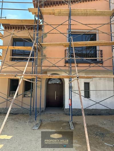 Townhouse villa for immediate delivery in Old Sheikh Zayed, next to Hypermarket and on El Nozha Street, with a panoramic view of green spaces.