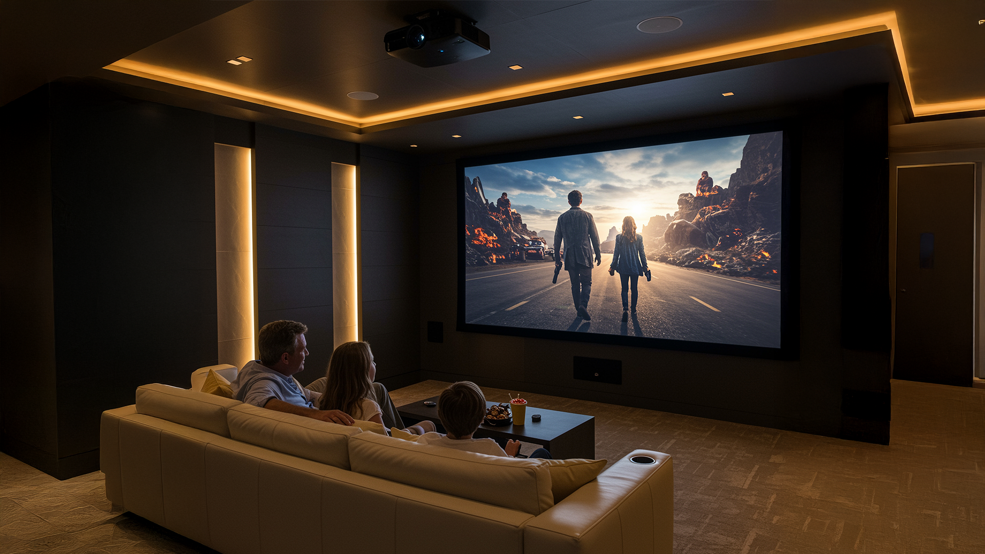 السينما المنزلية تختلف عن استخدام البروجيكتور في المساحات المفتوحة لأنها تقدم تجربة أكثر تركيزاً. غالباً ما يتم تصميم هذه الغرف لتكون مكاناً مغلقاً يساعد على عزل الصوت والتحكم في الإضاءة. لا تحتاج السينما المنزلية إلى مساحة كبيرة، بل يكفي وجود مقاعد مريحة، وإضاءة خافتة، و أنظمة صوت مناسبة.
